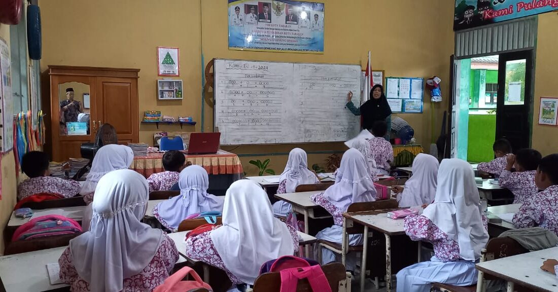 Di kelas sudah dibuat kesepakatan: “Duduk rapi, angkat tangan sebelum bicara, menjaga kebersihan, dan saling menghargai.”